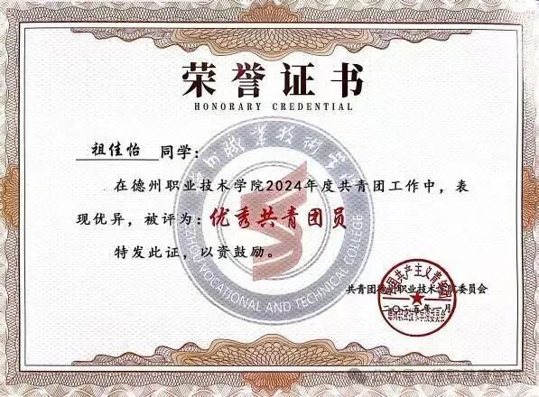 3.在2024年10月,被评为德州职业技术学院优秀学生;