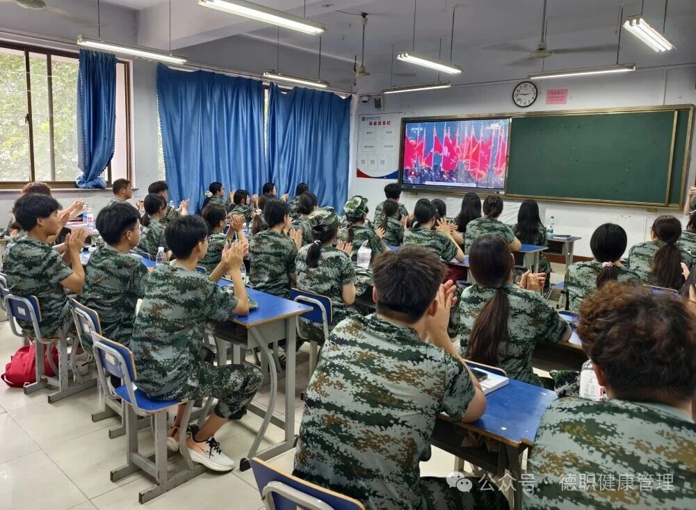 为纪念中国人民抗日战争暨世界反法西斯战争胜利80周年,9月3日,德州职业技术学院健康管理学院组织全体2025级新生观看了纪念中国人民抗日战争暨世界反法西斯战争胜利80周年大会直播。此次活动旨在让新生们感受祖国的强大,激发他们的爱国热情和民族自豪感。