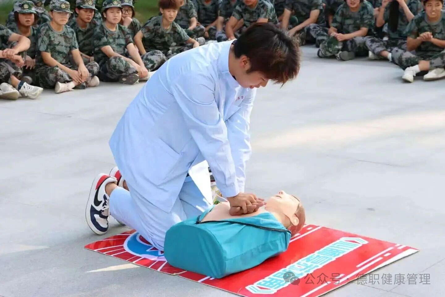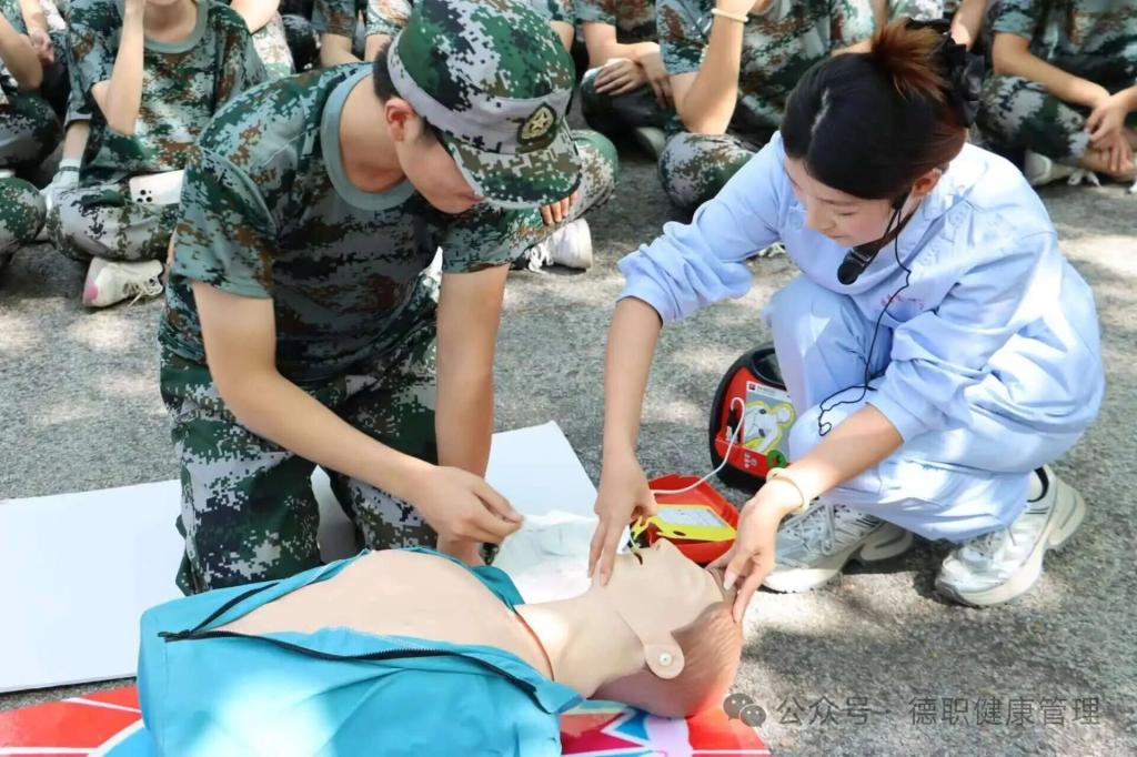 为切实提升新生应急救护能力,筑牢校园安全防线,9月9日下午,健康管理学院组织AED守护者联盟社团,深入各系院军训方队,开展AED使用及心肺复苏技能专项培训,将实用的急救知识送到新生身边。