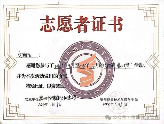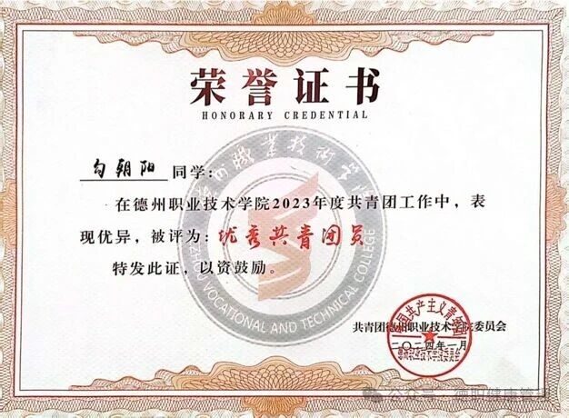 勾朝阳,男,汉族,2005年3月出生,现任德州职业技术学院健康管理学院秘书部部长、2023级康复治疗技术二班班长。2023年9月递交入党申请书,2024年3月被列为入党积极分子,2025年5月被列为发展对象,并于2025年6月成为预备党员。