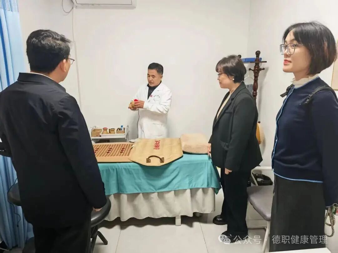 2025年10月13日,健康管理学院党总支书记范轶、院长王英博率队赴明医港参观考察,重点调研德州市非物质文化遗产代表性项目——扶阳罐。此次考察旨在深化校企合作,共促中医药适宜技术在健康服务领域的创新融合发展。