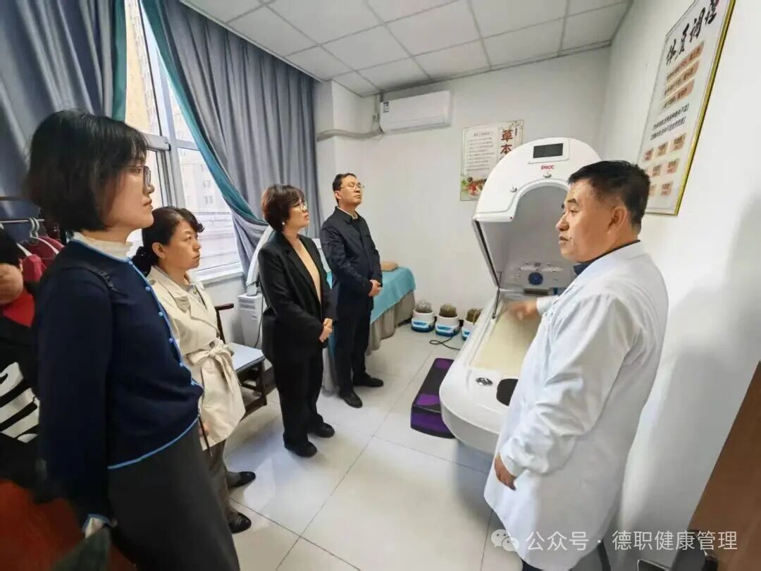 在相关负责人的陪同下,学院领导一行实地参观了扶阳罐技术展示区,详细了解了扶阳床的操作原理,并观摩了中药熏蒸太空舱等现代化中医调理设备。考察团对其在非遗技术传承、设备研发及健康服务模式创新方面取得的成果表示高度认可。