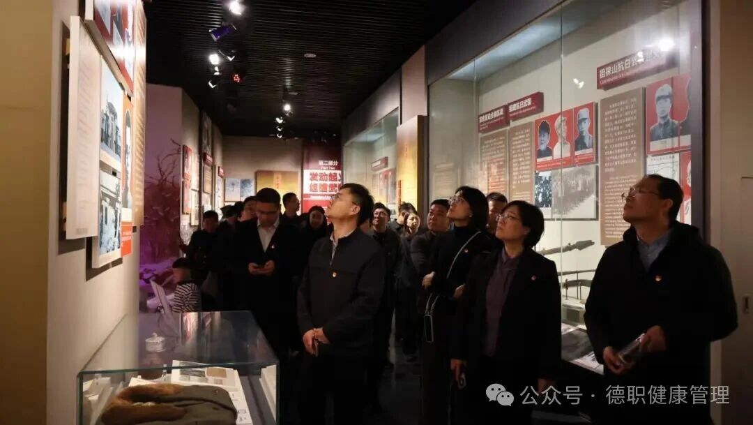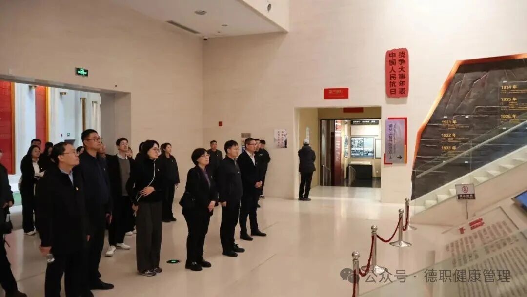 为纪念中国人民抗日战争暨世界反法西斯战争胜利80周年,传承红色基因,弘扬伟大的抗战精神,坚定党员理想信念,近日,机关党总支党政办公室党支部与健康管理学院党总支开展联合党建活动,全体党员赴莱芜战役纪念馆开展“追寻红色印记,砥砺初心使命”的党性实践教育。