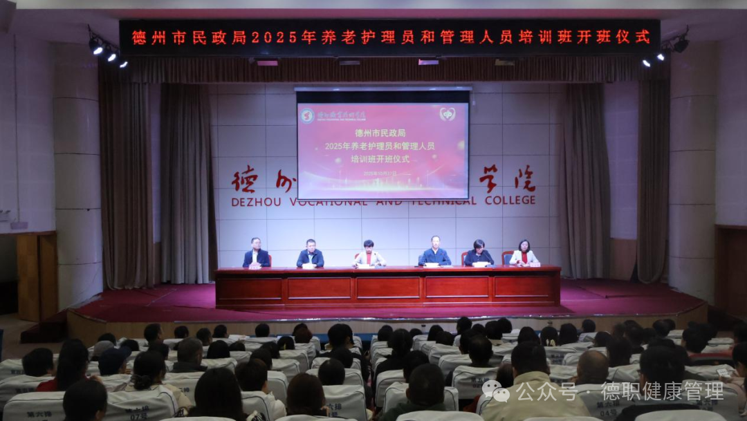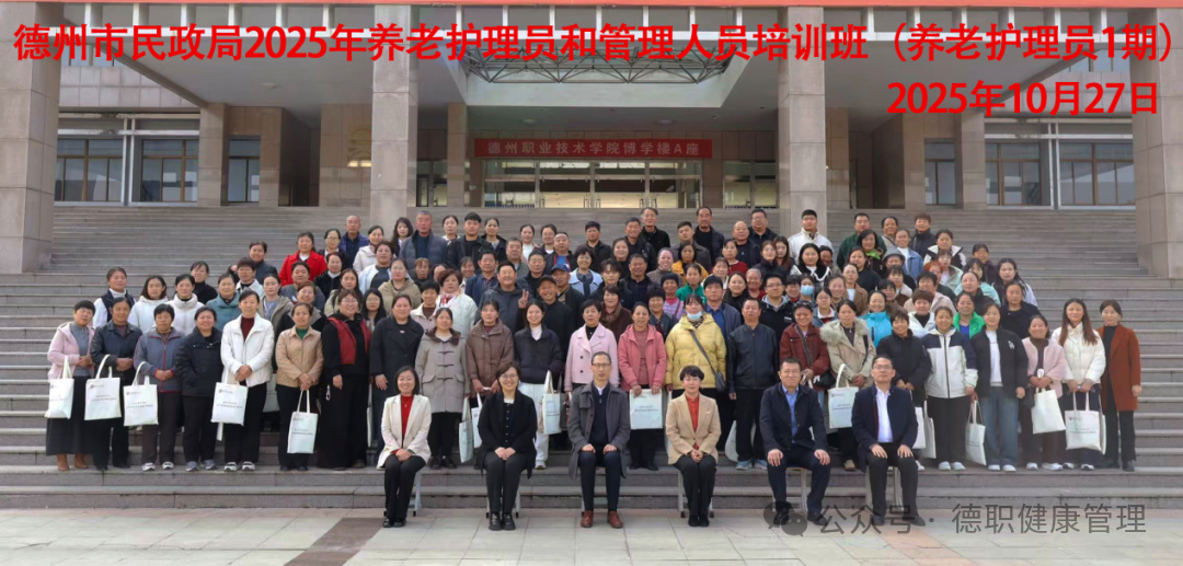 10月27日上午,德州市民政局2025年养老护理员和管理人员培训开班仪式在我校举行。党委委员、副书记赵晓静,德州市社会组织发展中心主任常立磊,继续教育学院及健康管理学院相关负责人参加了开班仪式。