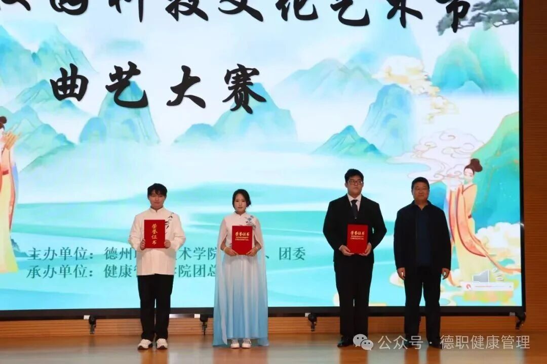 11月6日德州职业技术学院第十七届校园科技文化艺术节之曲艺大赛决赛在德州市职业教育发展中心多功能厅举行。本次大赛由校学生处,团委主办,健康管理学院团总支承办。校学生处处长郭吉海,健康管理学院党总支书记范轶等出席本次活动。本次大赛邀请孙晓云、张良、安丛笑老师担任评委。