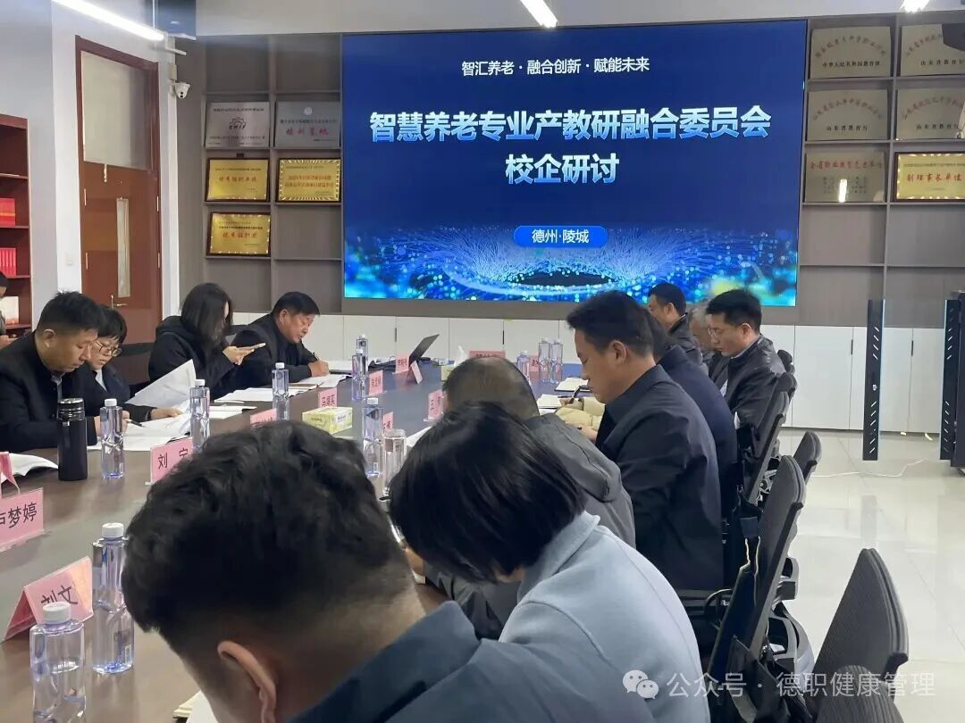 11 月 13 日,德州市陵城区职业中等专业学校牵头成立智慧养老专业产教研融合委员会,搭建政校行企协同育人新平台。健康管理学院院长王英博受邀参会,以《高端康养人才培养 “四化” 模式探索与实践》为题作专题报告,分享高端康养人才培养的典型案例与成熟经验。