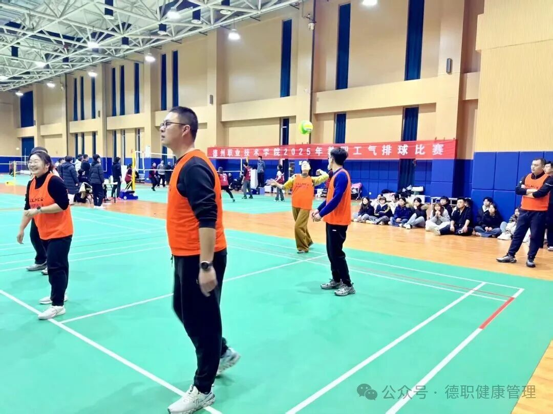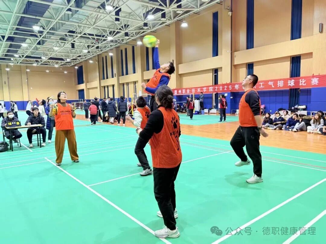 11月19日,德州职业技术学院2025年教职工气排球比赛在学校综合训练馆排球场正式举行。健康管理学院与智能制造学院的教职工代表队狭路相逢,一场紧张激烈的竞技对决就此拉开帷幕。