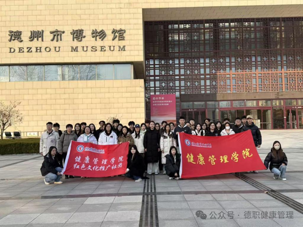 为引导青年学生近距离感受德州地域文化魅力,厚植乡土情怀,12月17日,健康管理学院红色文化推广社团组织社员走进德州市博物馆,开展沉浸式文化研学活动。红色文化推广社团的五十余名同学和指导老师参加了此次活动。