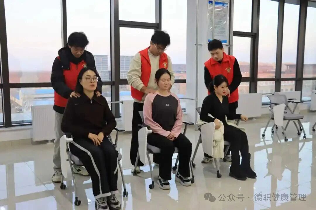 沙龙结束后,老师们还体验了中医健康项目,通过中医经络诊断仪,进行体质检测。健康管理学院康复专业薛彤瑶老师现场指导,帮助老师们解读报告、传授日常调理方法。学生志愿者还给老师们提供了一些简单实用的保健技巧,气氛温馨融洽。