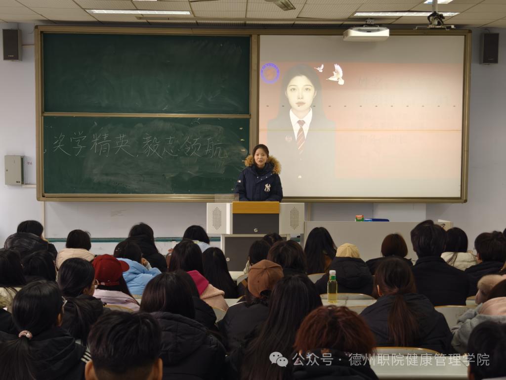 为发挥榜样引领作用,激励学子锤炼意志、奋勇向上,健康管理学院于12月30日在C105教室举办励志分享会。赵立丽、王建萌、刘佳丽三位优秀学生代表受邀主讲,学院学生代表到场聆听学习。