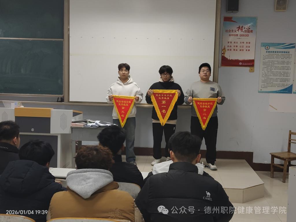 为擦亮学院“健康”名片,打造干净整洁的学习生活空间,健康管理学院1月4日在C104教室举办卫生评比表彰活动。