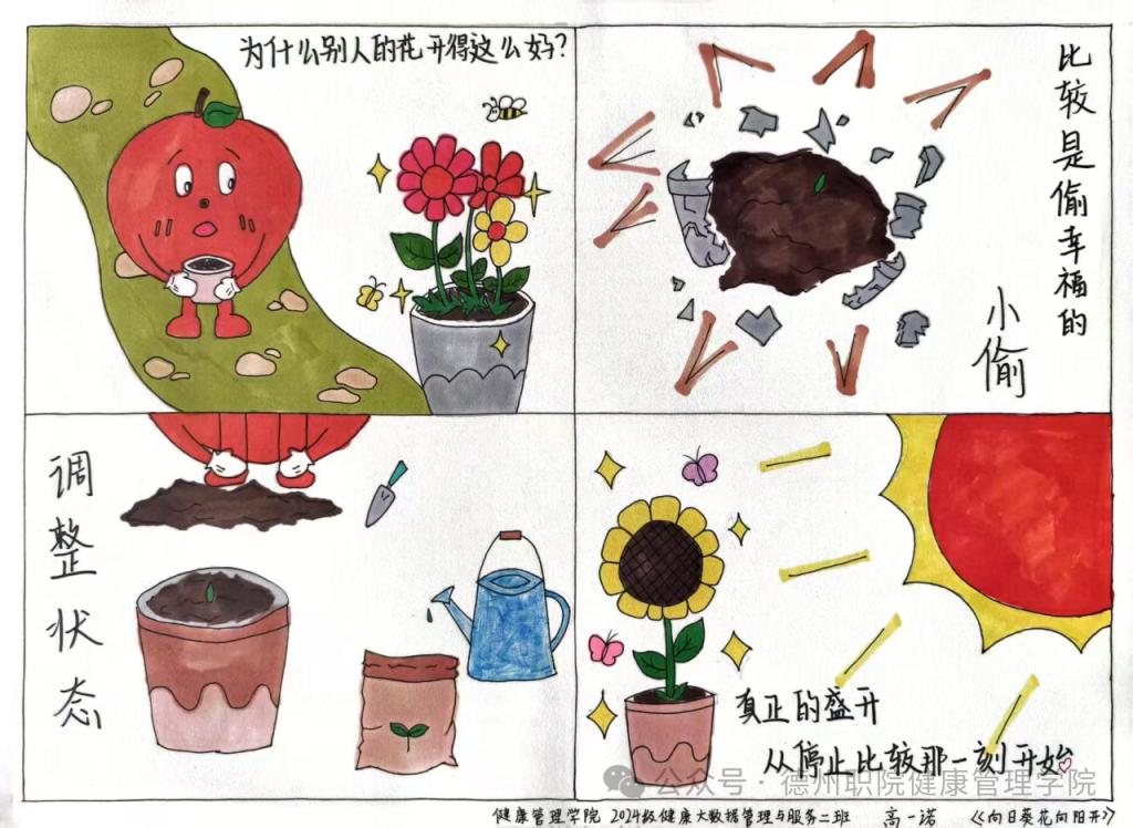 为切实关注学子心理健康成长,搭建自我表达与心灵对话的专属平台,充分挖掘同学们的艺术创作潜能,健康管理学院特举办“绘心暖愈,逐光成长”心理漫画比赛。大家以笔为媒、以画传情,用灵动的线条、温暖的色彩,将对心理健康的深刻思考、对成长困惑的真挚感悟,凝练成一幅幅生动鲜活的作品。