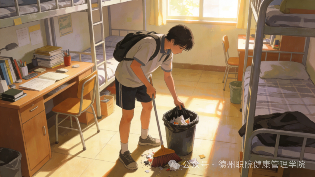 认真整理宿舍内务,清理生活垃圾,保持宿舍环境整洁卫生。