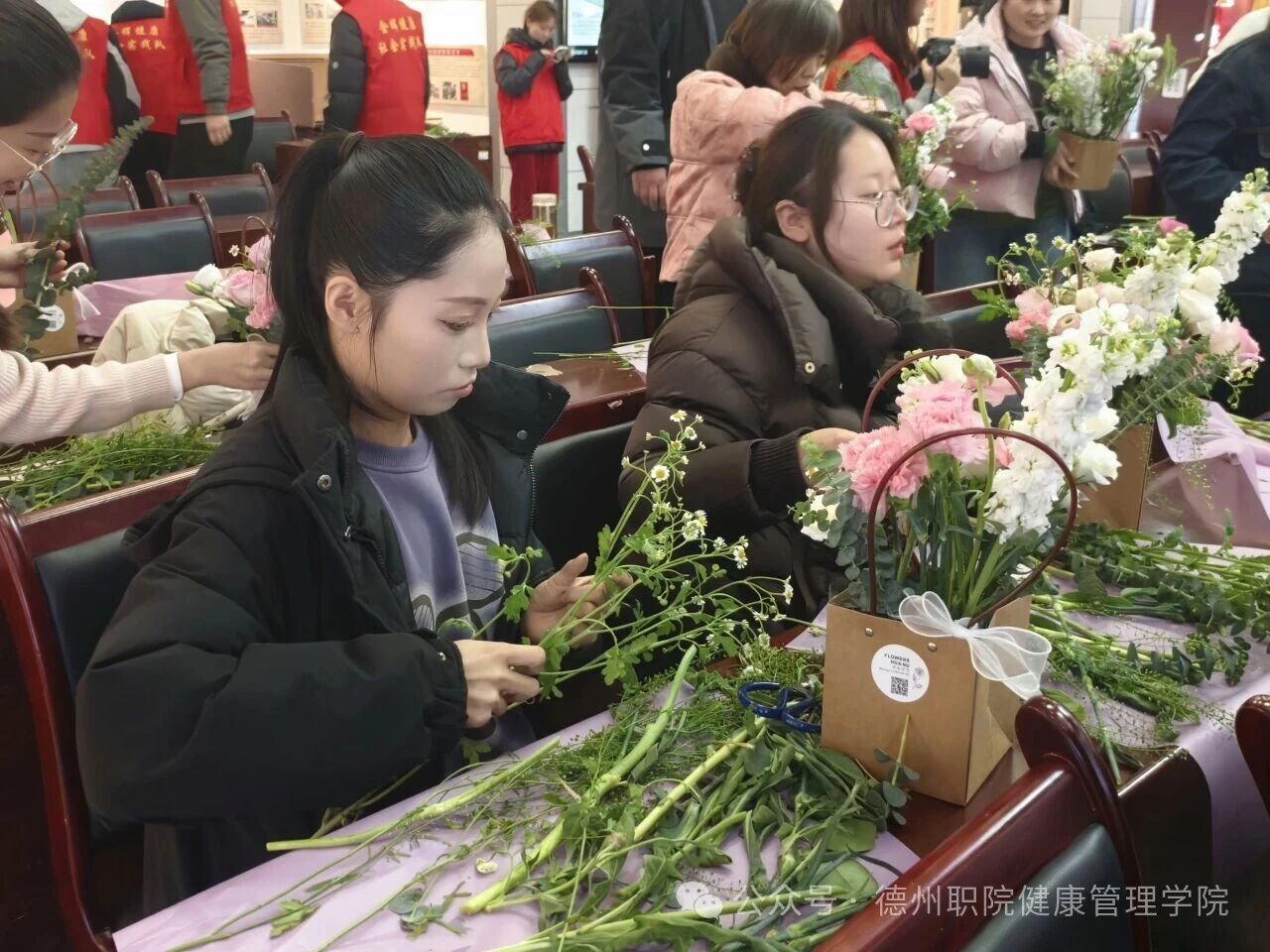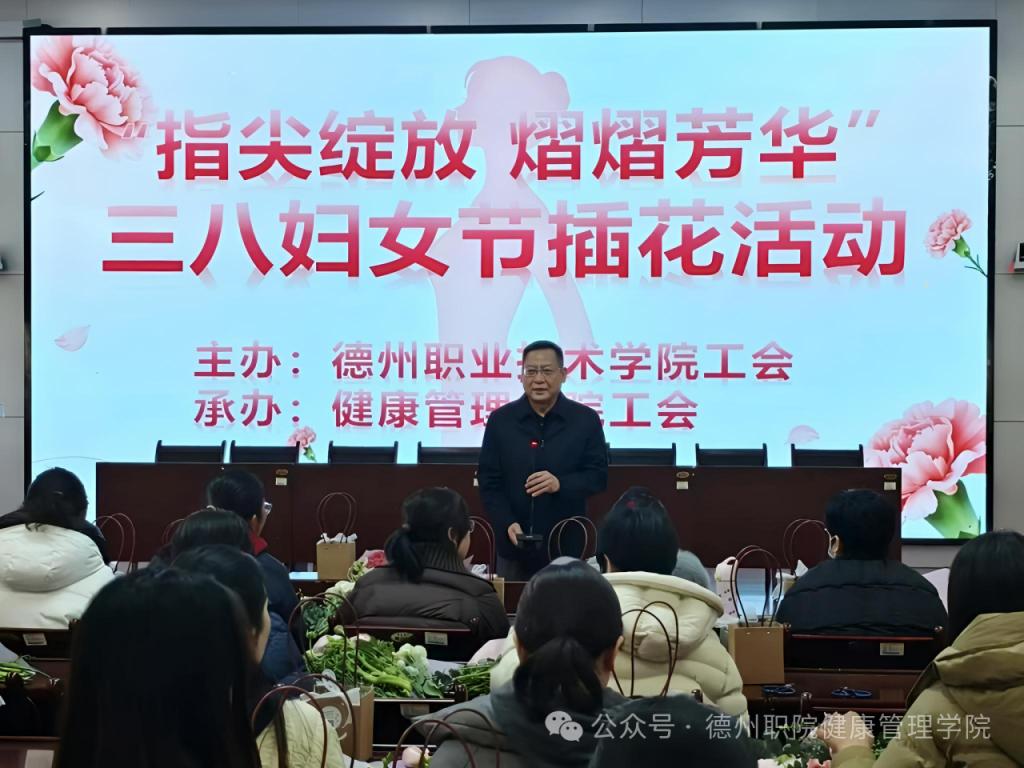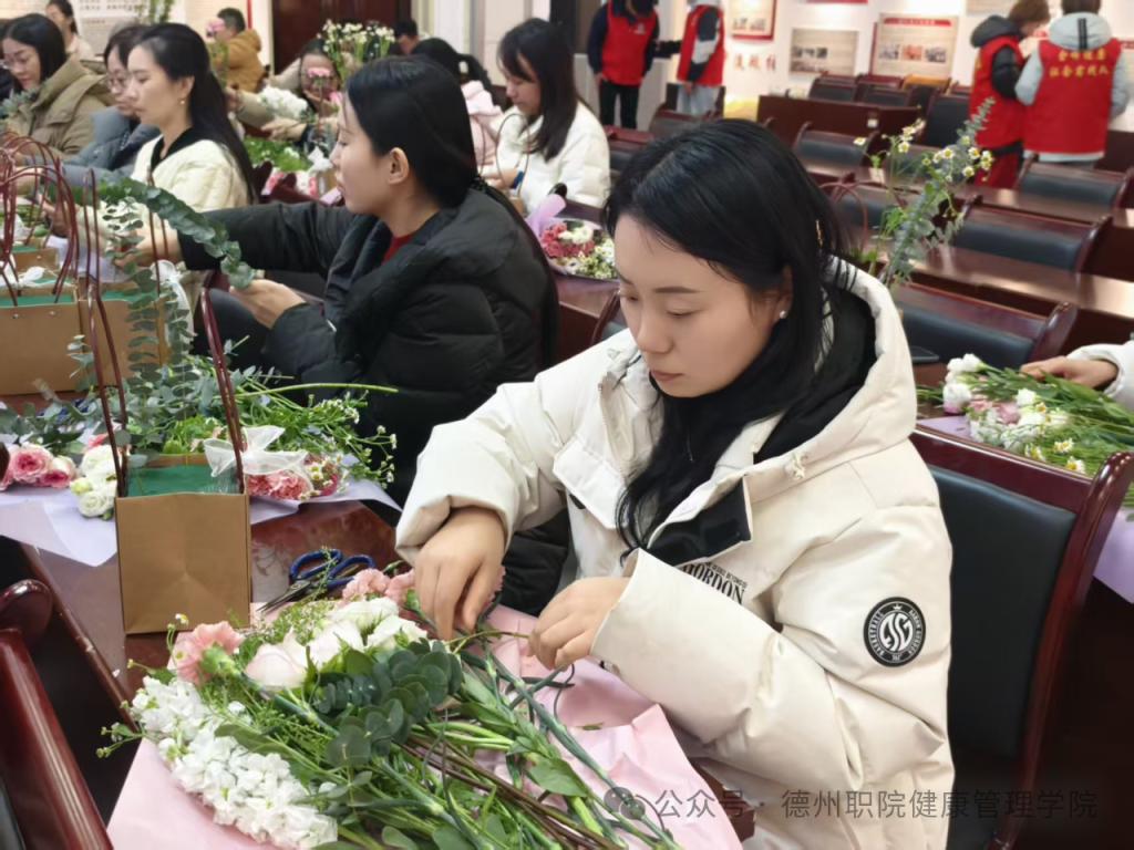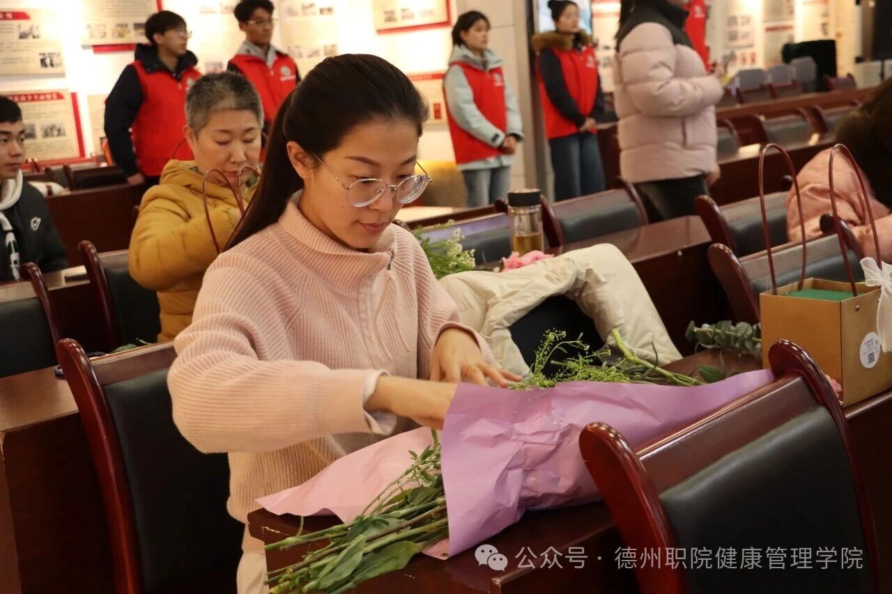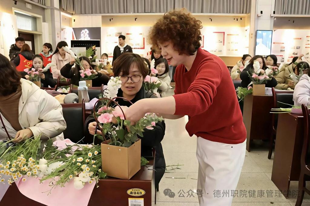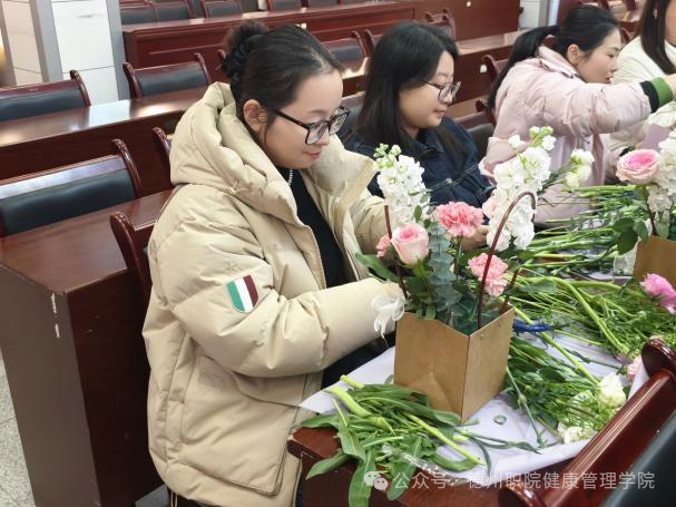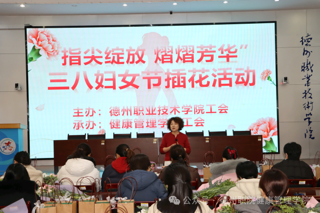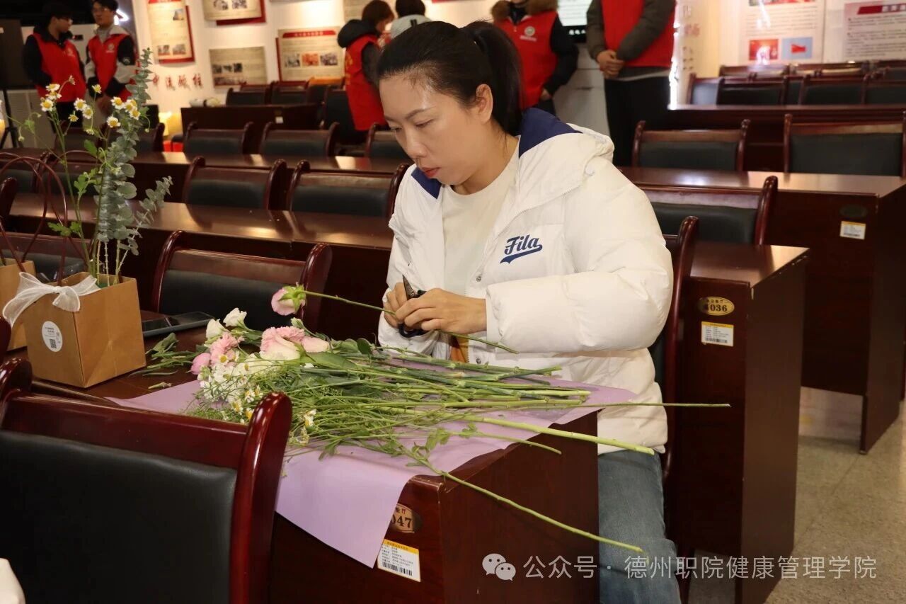为庆祝第116个“三八”国际妇女节,进一步丰富校园精神文化生活,展现我校女教职工健康优雅、积极向上的时代风采,3月6日,由学校工会主办、健康管理学院工会承办的“花香巾帼,美丽德职”主题插花活动在思齐楼思政VR实践研修基地成功举办。学校党委委员、工会主席刘伟出席活动,全校四十余名女教职工热情参与。