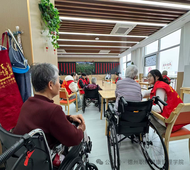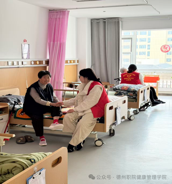 3月23日,健康管理学院“金晖健康”志愿服务队的志愿者走进德达德颐康养护院,以专业守护健康,以爱心温暖夕阳,将贴心的关怀送到老人身边,让养护院里春意盎然、暖意融融。