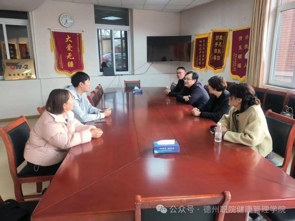 在盛欣老年公寓、李沧区颐福养老院两家五星级养老机构,走访组深入了解机构人员结构、老人入住情况、实习生待遇及实习转正细则等内容,就养老服务专业人才培养、实习就业基地建设等事宜进行交流探讨。