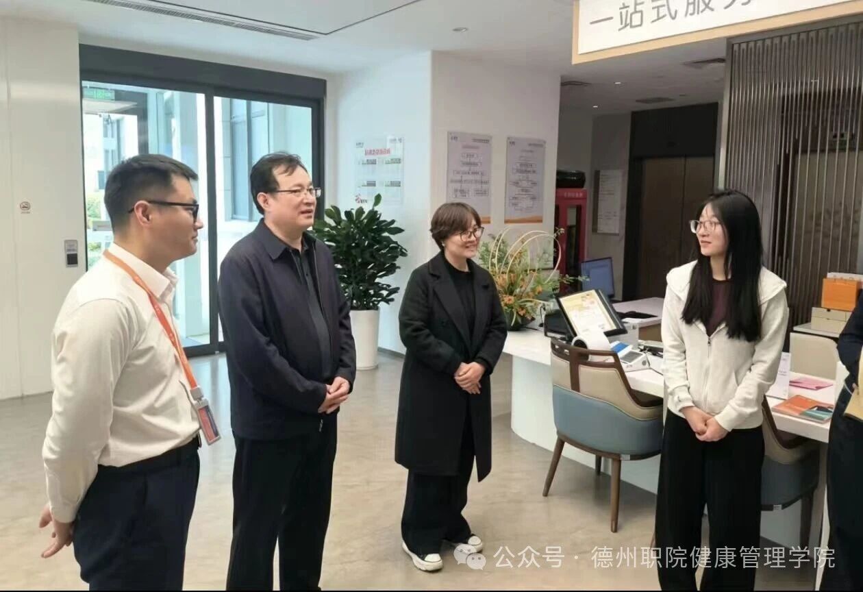 在泰康之家琴园(青岛)养老服务有限公司,实地参观了综合门诊部、住宿部、娱乐区、体检中心等场所,详细了解企业运营情况。座谈中朱弘主任介绍了学校办学特色与人才培养成果,企业负责人介绍了公司发展现状,并表达了在学生实习实训、师资培训、课题研究等方面开展深度合作的意愿。考察组随后看望了我系实习学生,细致询问实习岗位、生活起居与成长收获,叮嘱学生珍惜实践机会、虚心学习提升。