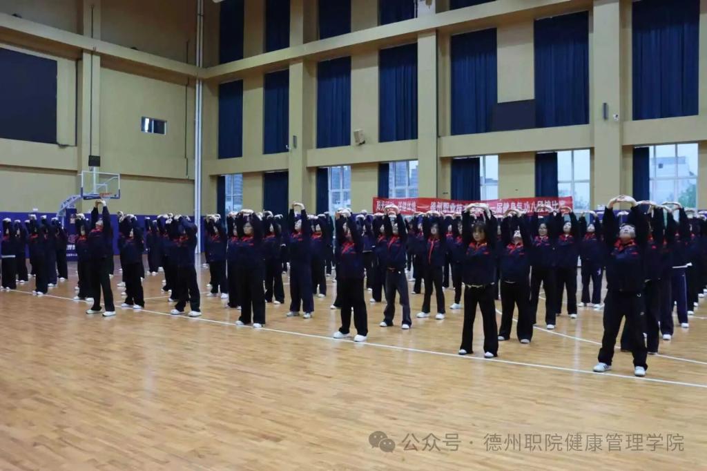 赛前,全校各系(院)积极响应、精心组织,分别开展系(院)八段锦参赛人员选拔赛,层层筛选、优中选优,最终选拔出一批功底扎实、表现突出的优秀选手,组建各系(院)代表队参赛。选手们精神饱满、身姿挺拔,动作舒展规范、行云流水,将八段锦的刚柔并济展现得淋漓尽致,既诠释了中华传统养生功法的深厚底蕴,又彰显了新时代学子朝气蓬勃、积极向上的精神风貌,现场秩序井然、掌声不断,每一个标准的动作都定格了德职学子们传承传统文化的坚定身影,最终为这场精心筹备的文化盛宴画上了圆满句号。